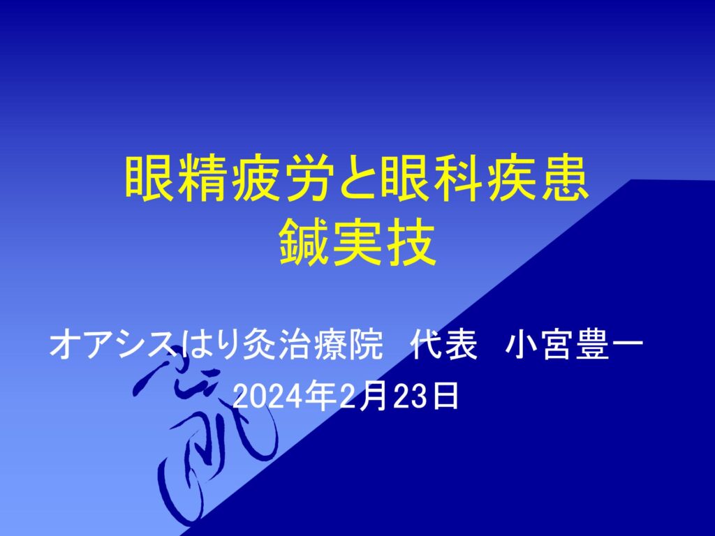 眼精疲労や様々な眼疾患に対する眼科鍼灸