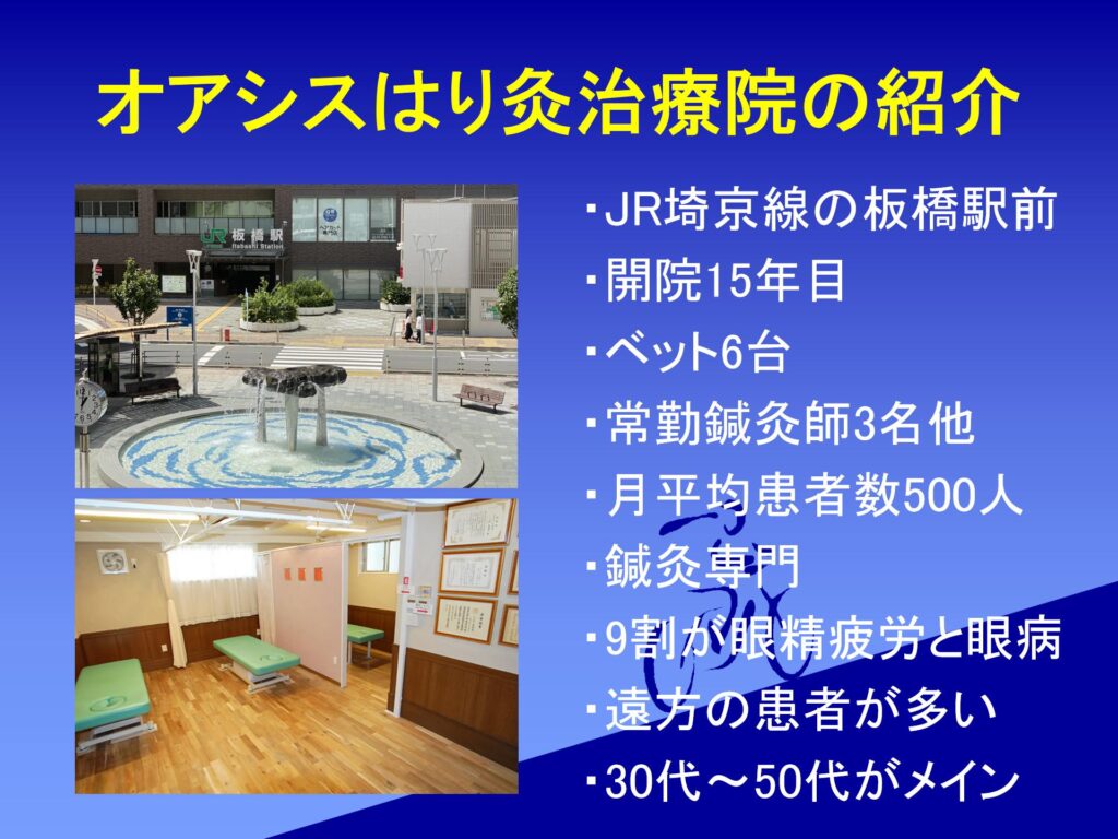 眼精疲労や目の病気で悩んでいる人は多いけど、鍼灸を選択しにするケースは少ない。また、目に特化した治療院も少ない。